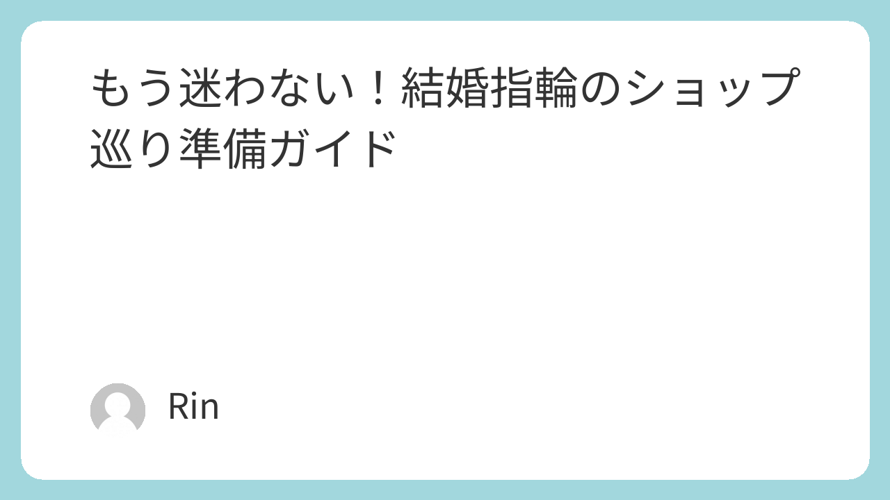 この記事が、二人の運命の指輪を見つけるための道しるべとなれば幸いです。